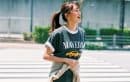 デザインT×サイクルパンツで感度高めなご近所スタイルに。インナーにパキッとした白Tを仕込んでメリハリと抜け感を。