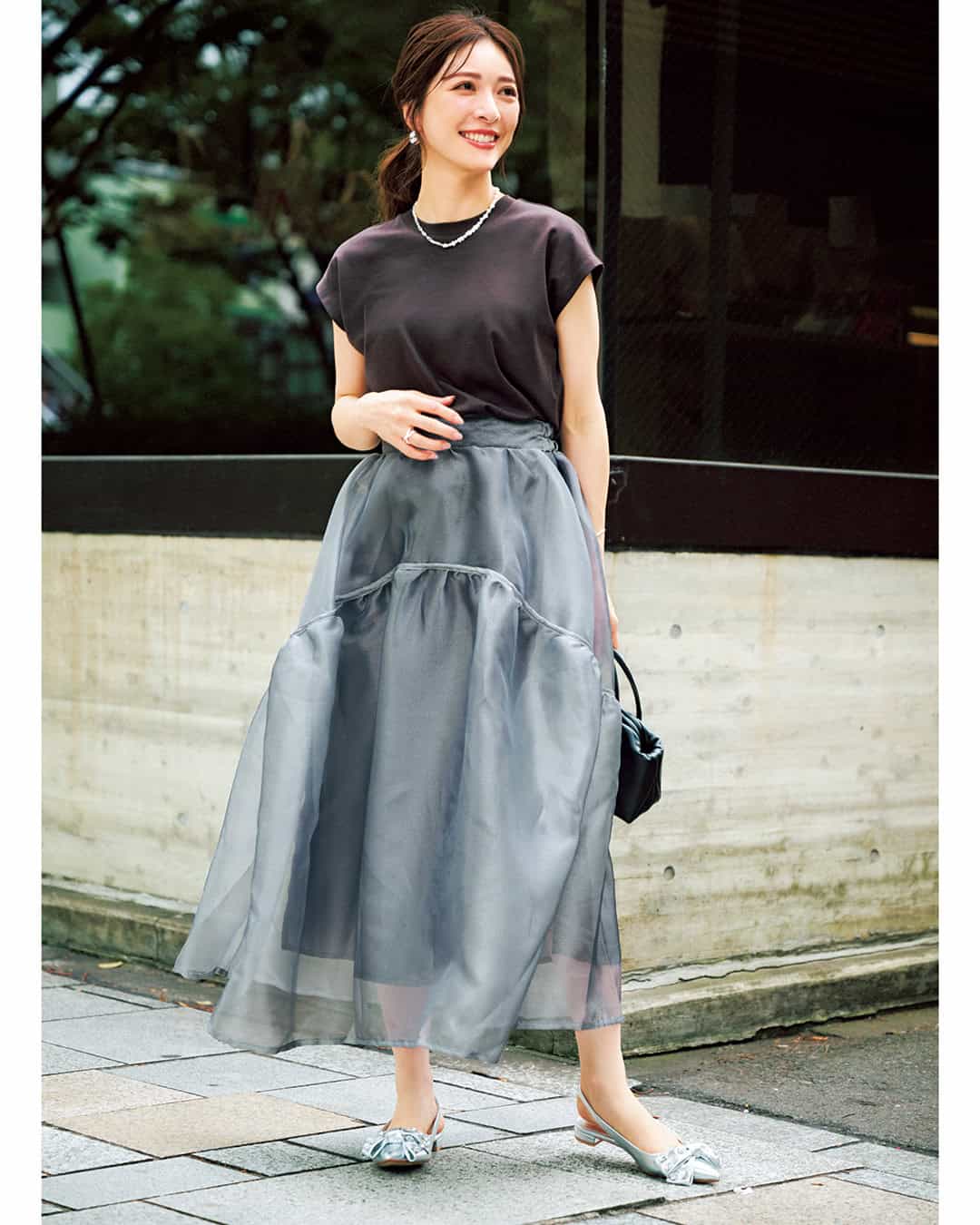 ②軽やかなシアー感で暑苦しく見えない「甘スカート」
