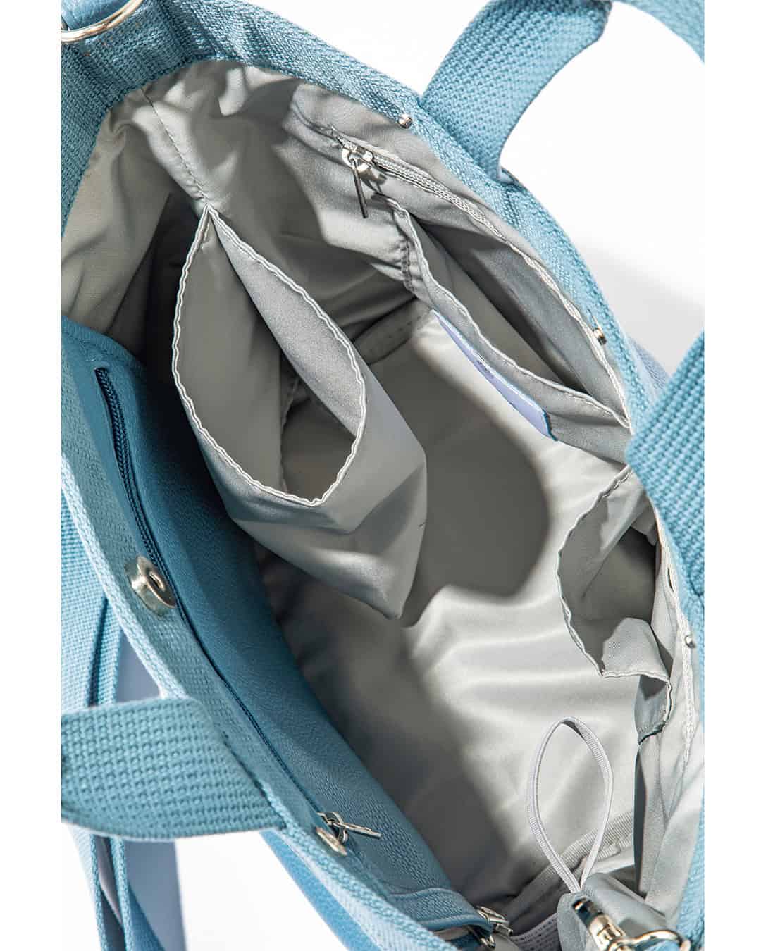 コーデに映える鮮やかなカラーと、本革のようなシボ感がしっかり高見え。ミニサイズは長財布も入る内ポケットやペットボトルホルダーなど細かい仕切りが整理収納に一役。