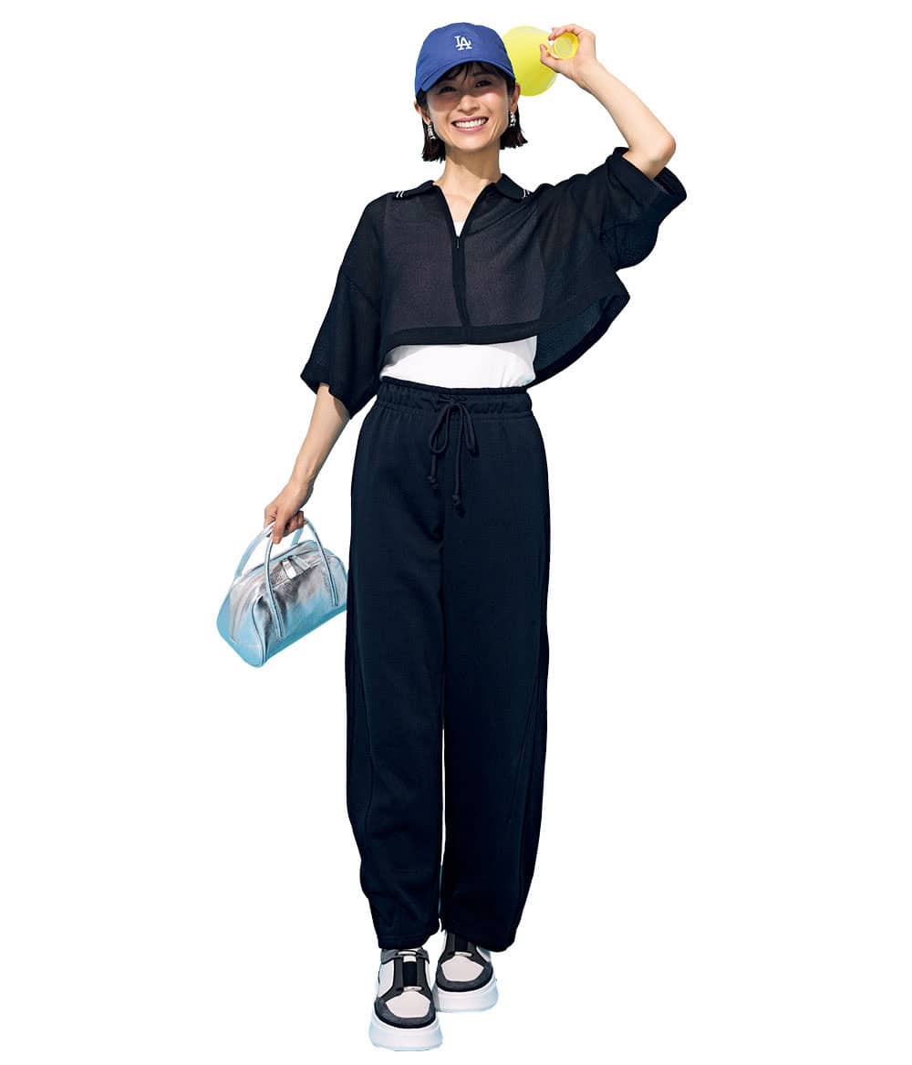 頼れるのはストレスフリーに使えるプチプラ服。「黒」は使い勝手が良い一方で、安っぽさがわかりやすいのも難点。着こなし術を身につけれて「透けポロニット」でトレンドを前面に。