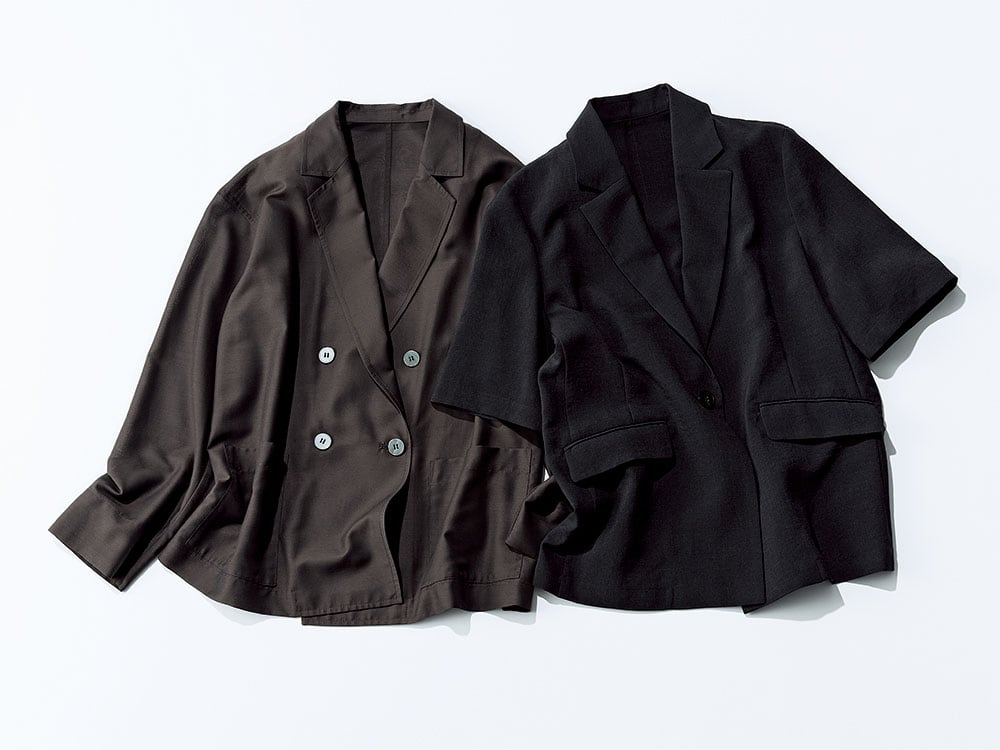 (左から)グレーシアジャケット¥7,698(グローブ/ワールド プレスインフォメーション)、ブラック半袖ジャケット¥6,996(ロペピクニック/ベイジュ)
