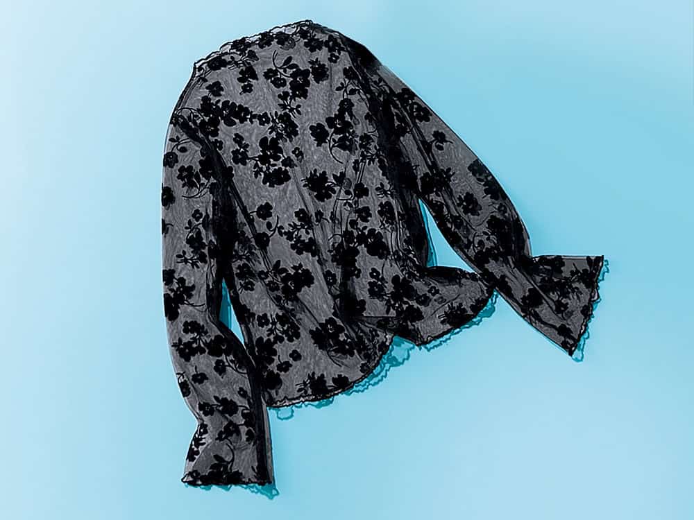 まだ長袖を楽しめる初夏。トレンドを先取りしたいから、最旬の花柄×シアーなトップスがおすすめ。ワンツーコーデも華やかに。