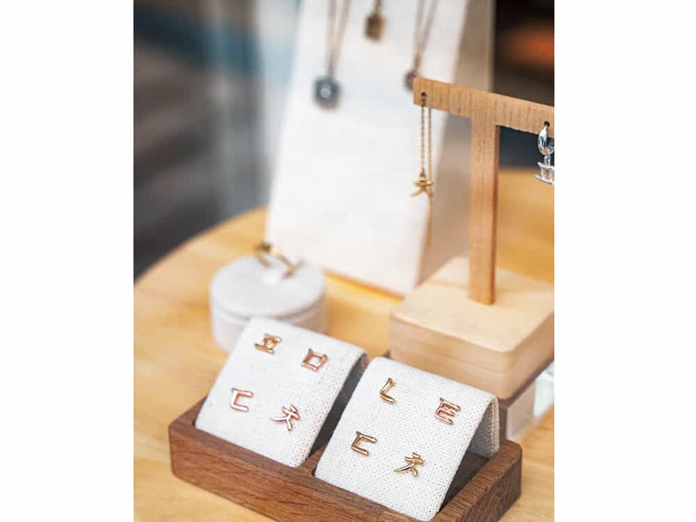 韓国好きにはたまらないハングル文字のジュエリー。どのハングルも可愛くて、一点ずつ選ぶ楽しさはまた格別! 店長は日本語を勉強中で会話も弾みます。