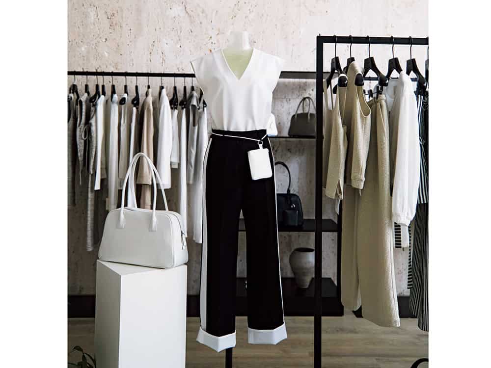 モノトーンを基調にした洗練されたセレクトが魅力。着心地・素材・シルエット、どれもこだわり抜かれた逸品ばかり。洋服はもちろんバッグの人気も高い。