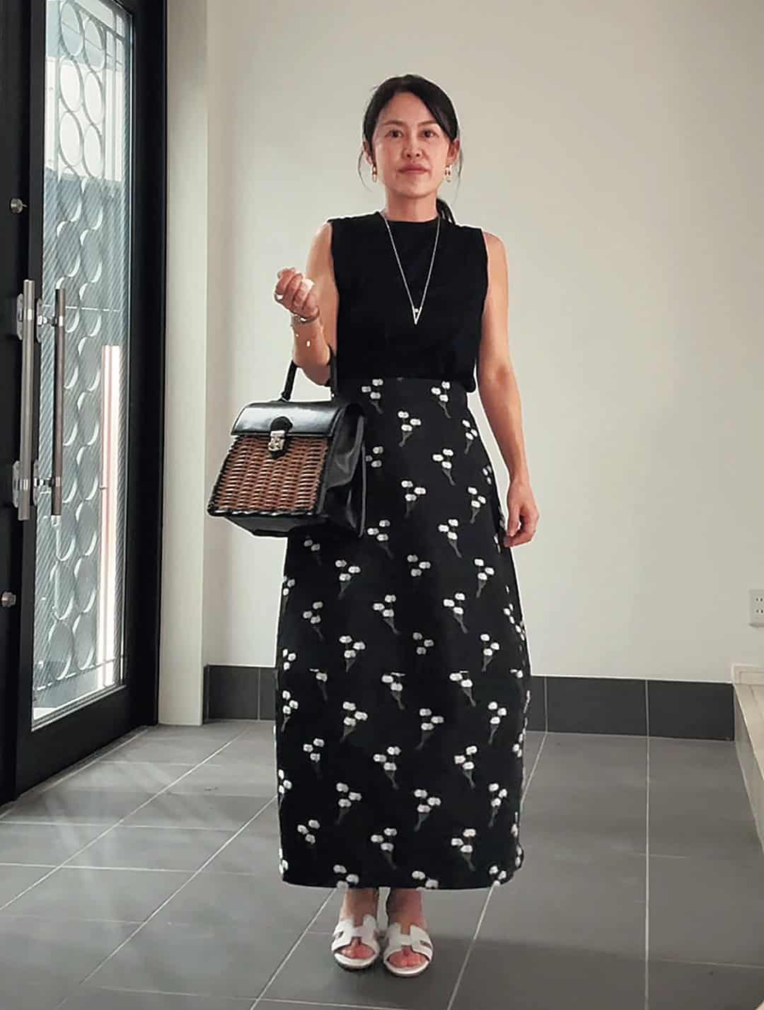 ちょっとカジュアルすぎ? 甘すぎ? とためらいがちなアイテムも〝ほぼクロ〟なら挑戦できると全国のオシャレ40代が注目中! なかでも甘め派は、シルエットにひねりが効いた「黒スカート」を重宝している様子。黒ベースでもしっかり華やか、ワントーンでも洒落感を出せる、自慢の名品スカートを拝見します。