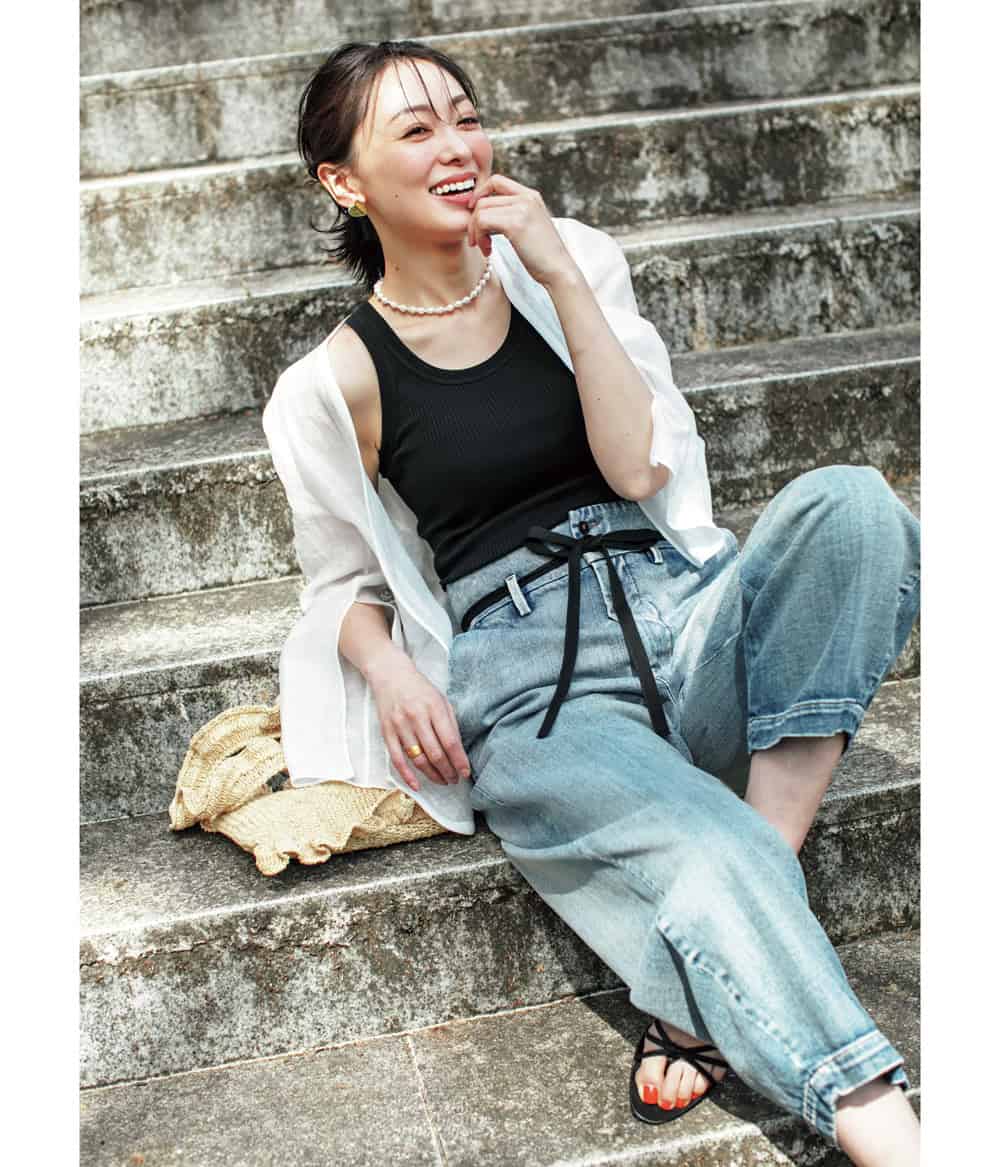 3位 【トレンド羽織り】で夏定番のタンクトップ×デニムを格上げ!