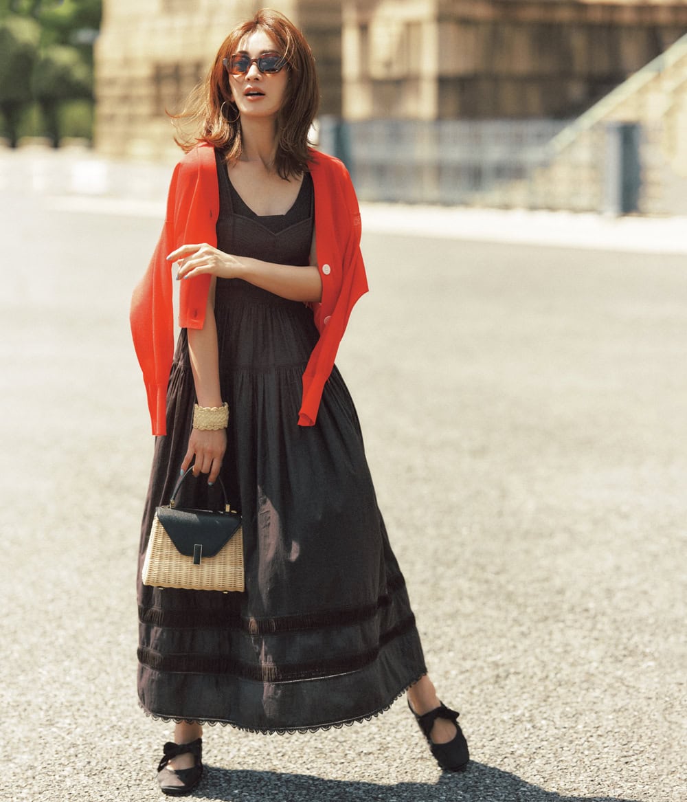2位 【蛯原友里さんコーデ】シンプルにして極上、本命の黒ワンピースに夏を託して