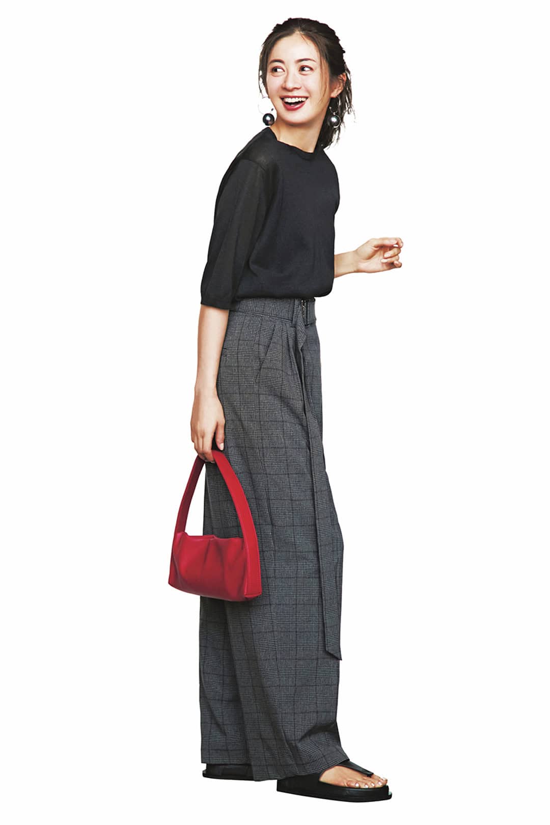 シアートップス¥20,900(カレンソロジー/カレンソロジー 二子玉川)キャミソール¥35,200(サヴィル サヴィ)パンツ¥26,400(プランクプロジェクト/プランクプロジェクト 青山店)バッグ¥19,800〈ブリー レオン〉ピアス¥29,700※片耳価格〈ジャスティン デイビス〉(ともにジャック・オブ・オール・トレーズ プレスルーム) サンダル¥15,400(ワースタジオ/アルアバイル)