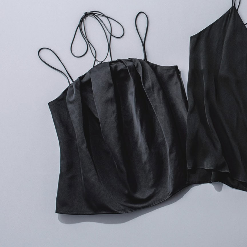 見せストラップはより細めが大人向き。 黒キャミソール¥20,900(プランクプロジェクト/プランクプロジェクト 青山店)