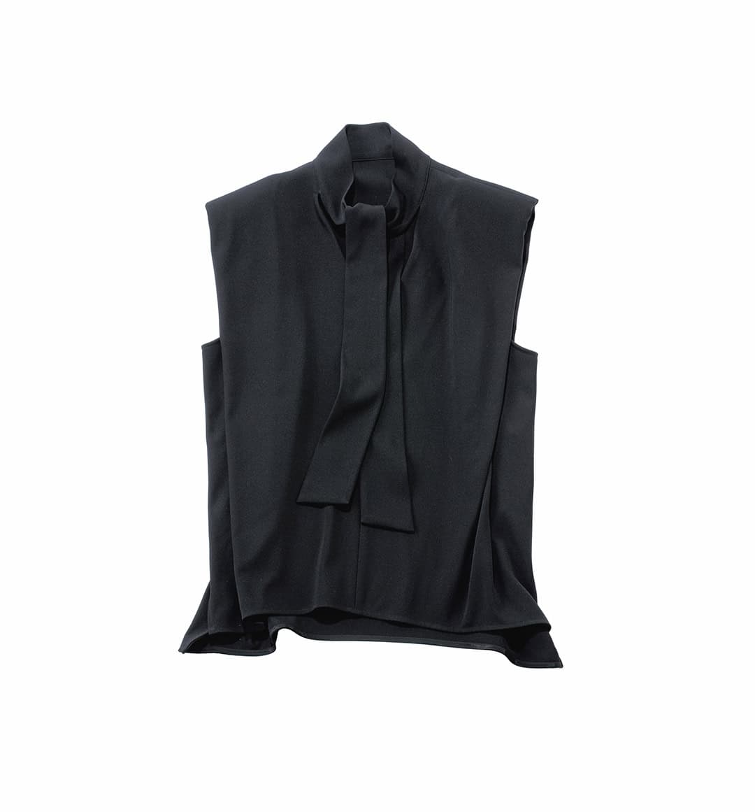ほんのりモードな華を添えてくれるシックなボウタイブラウス。 タイトップス¥26,500(シーニュ)