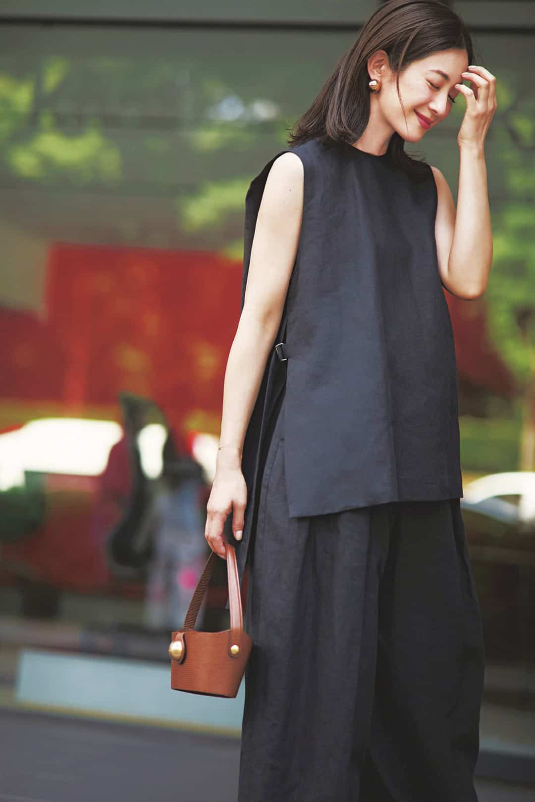 二の腕は、露出感よりもシルエットが気になり、「いつも隠している」という人も多いのでは。実は、中途半端に隠すより、潔く出すことでむしろほっそり見えを狙えるんです。肩の上で生地が重なっているボックスショルダーなら、幅広デザインの錯視効果で華奢見えが叶います!