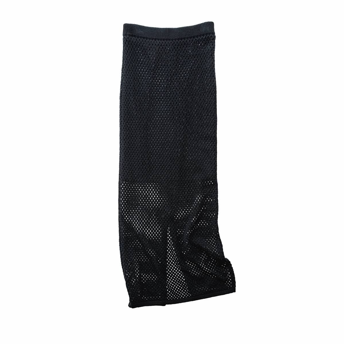 2.きちんと感のあるオールブラックコーデに、シアーパンツで奥行きと抜け感をプラス