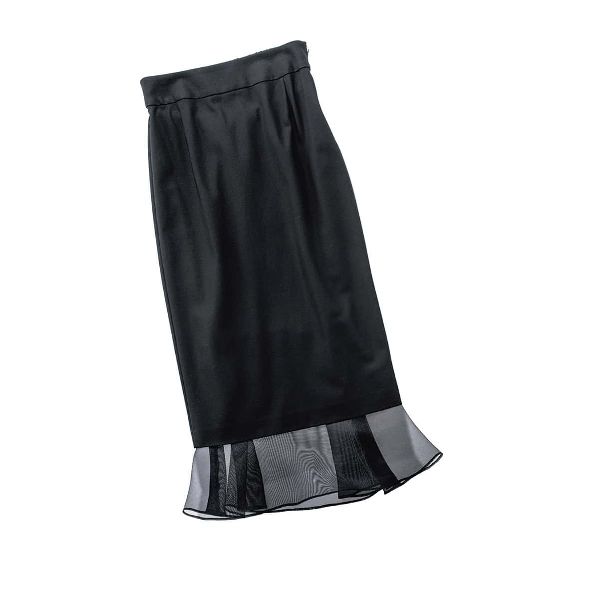裾だけがシアーになったデザインなら、取り入れやすい。スカート¥28,600(プルミエ アロンディスモン/プルミエ アロンディスモン NEWoMan新宿)