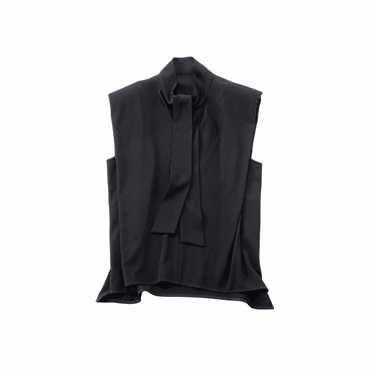 ほんのりモードな華を添えてくれるシックなボウタイブラウス。タイトップス¥26,500(シーニュ)