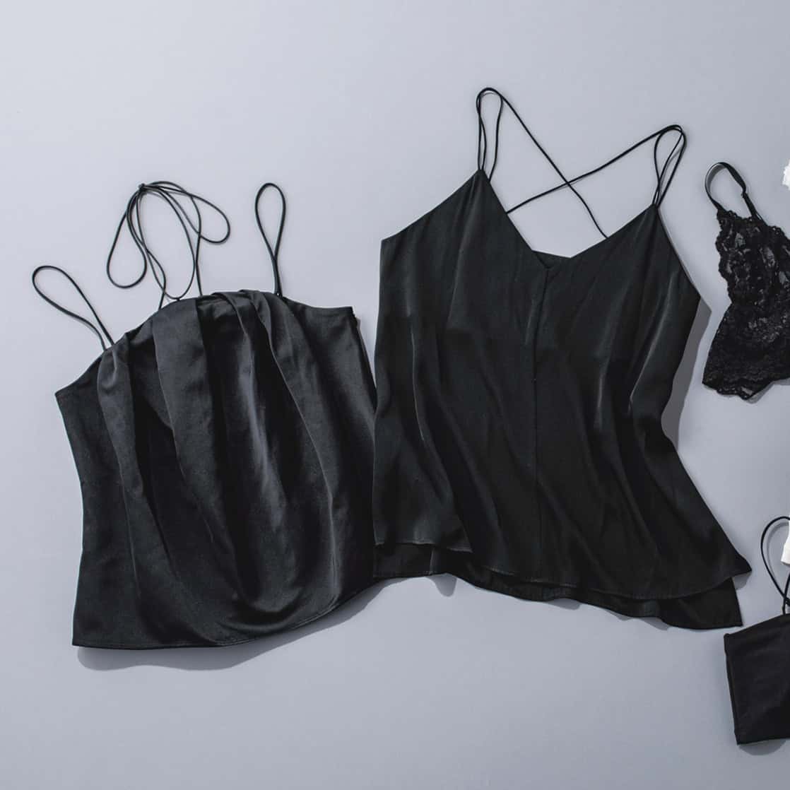 クロスキャミソール¥35,200(サヴィル サヴィ) 黒キャミソール¥20,900(プランクプロジェクト/プランクプロジェクト 青山店)