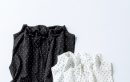 しなやかな素材にドットをプリント。裾がバルーンデザインなのでボトムスにインしなくてもサマになります。衿もとのリボンもさりげないフェミニンさを加えます。