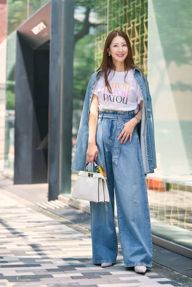PATOUのTシャツは生地感がさらっとしていてきれいめに着られるので、カジュアルなアイテムと合わせても子どもっぽくならないのが魅力。夏はカゴバッグやリネン、ホワイト系のアイテムと合わせて軽やかに。秋はレザー小物を取り入れ、テイストミックスで大人っぽいスタイリングを楽しみたいです。