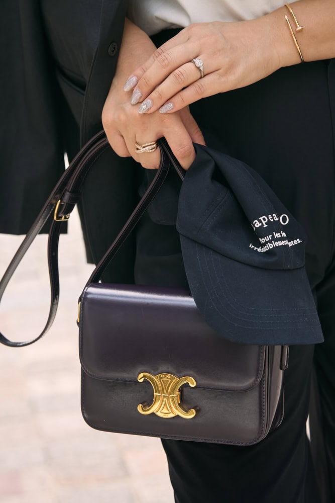 白地にネイビーロゴのスポーティなロゴTシャツはこの夏大活躍だった1枚。少し涼しくなったらサラッと羽織れる軽いジャケットをON。シャリ感のある素材でシワになりづらく、堅苦しくもならないので、つい手に取ってしまう頼れるジャケットです。キャップとスニーカーを合わせてブラックコーデにラフさを加えてみました。深いパープルの艶レザーが秋らしいバッグをポイントに。
