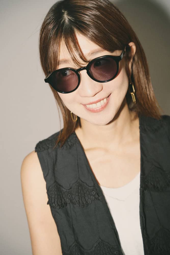 顔タイプ診断でソフトエレガントと分かり、顔の柔らかさと女性らしさを引き立てるライトなカラーが似合うと教わり、今回は、顔まわりに優しく馴染む薄めのブラウンのフレームに、グレーレンズを合わせたサングラスをセレクト。甘めのファッションが好きな私ですが、モード感のあるデザインを選ぶことで、ほどよく糖度を抑えました。