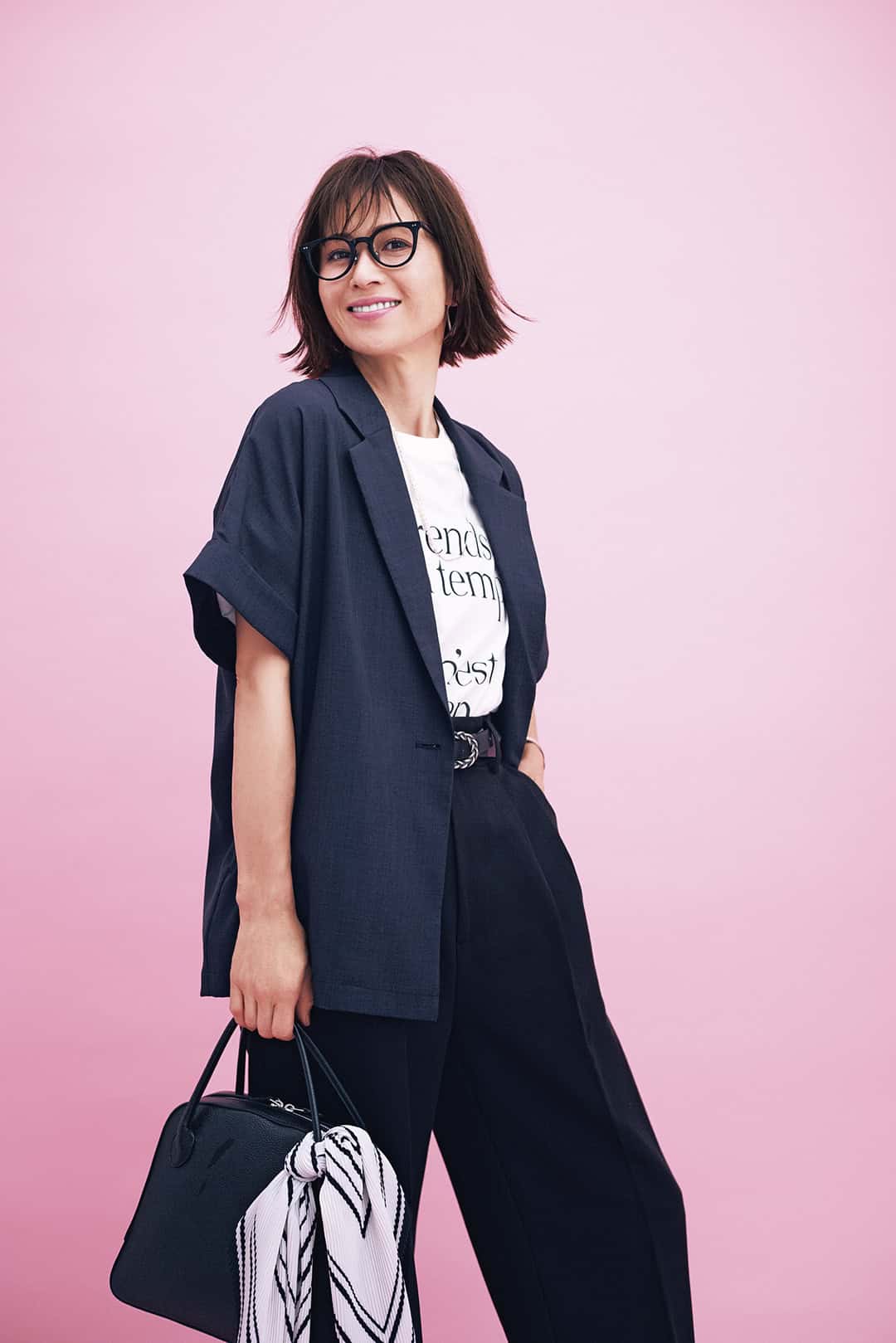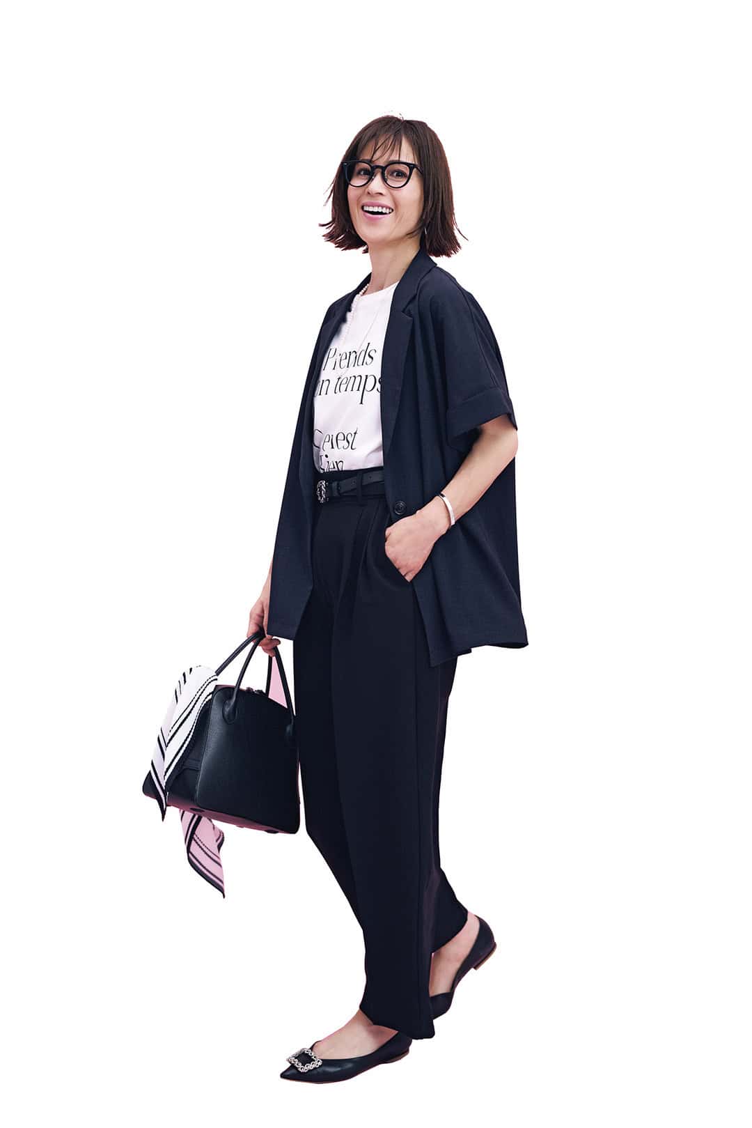 通勤×白Tの王道!半袖ジャケットで今っぽく
