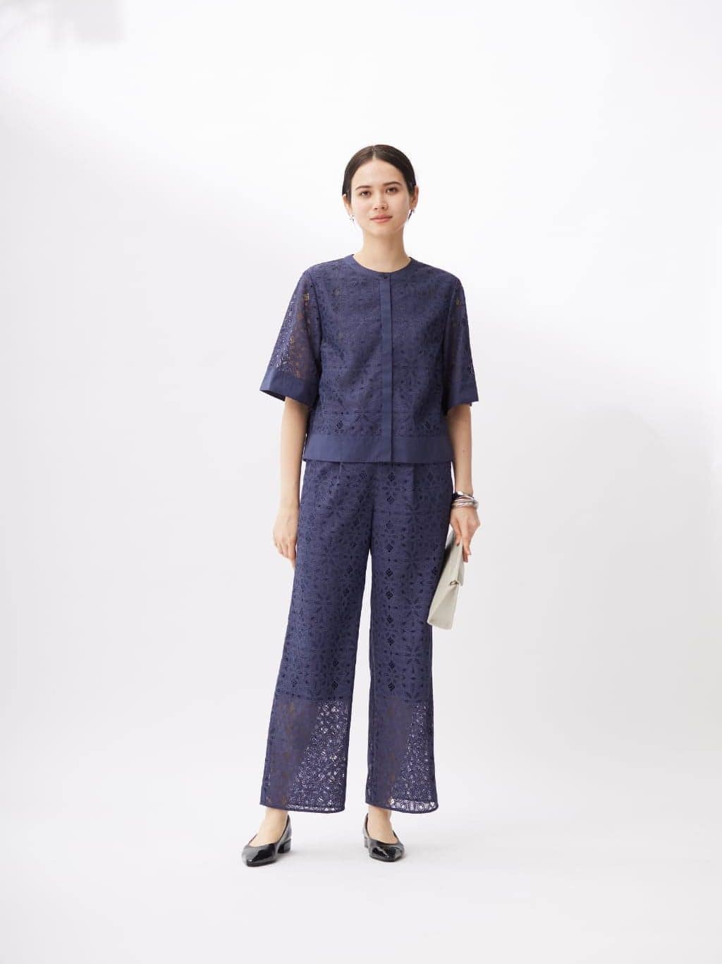 高見え抜群なレースのワイドパンツ。ワイドストレートのいいとこ取りなシルエットは、きちんと感たっぷりで、上品な雰囲気に。裏地がしっかりとあるので、肌見も抵抗なしで着やすそう。レース素材でありながら、洗えるので、汚れを気にせずオシャレを楽しめます!