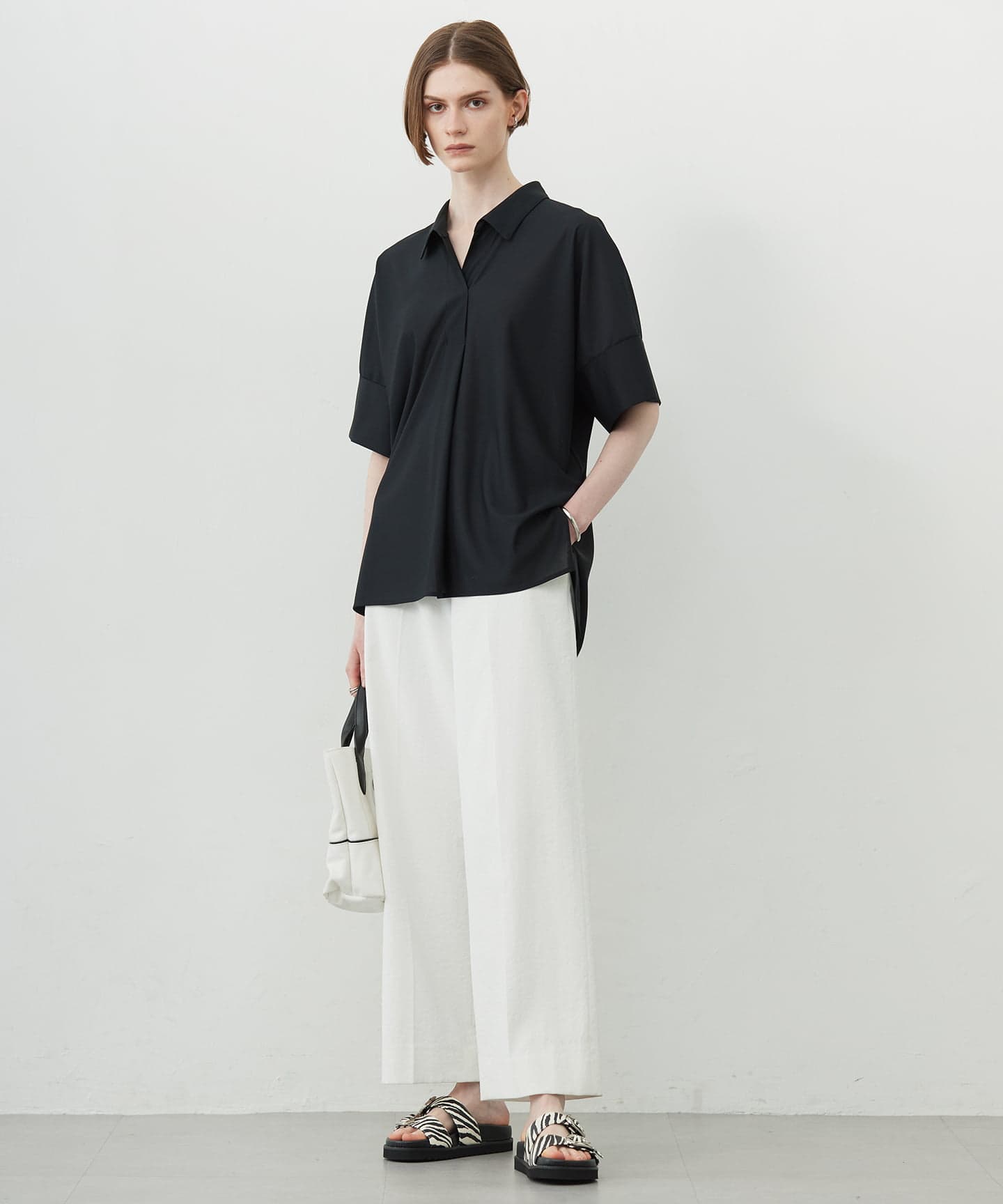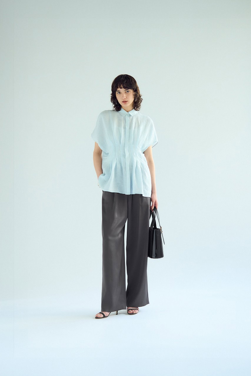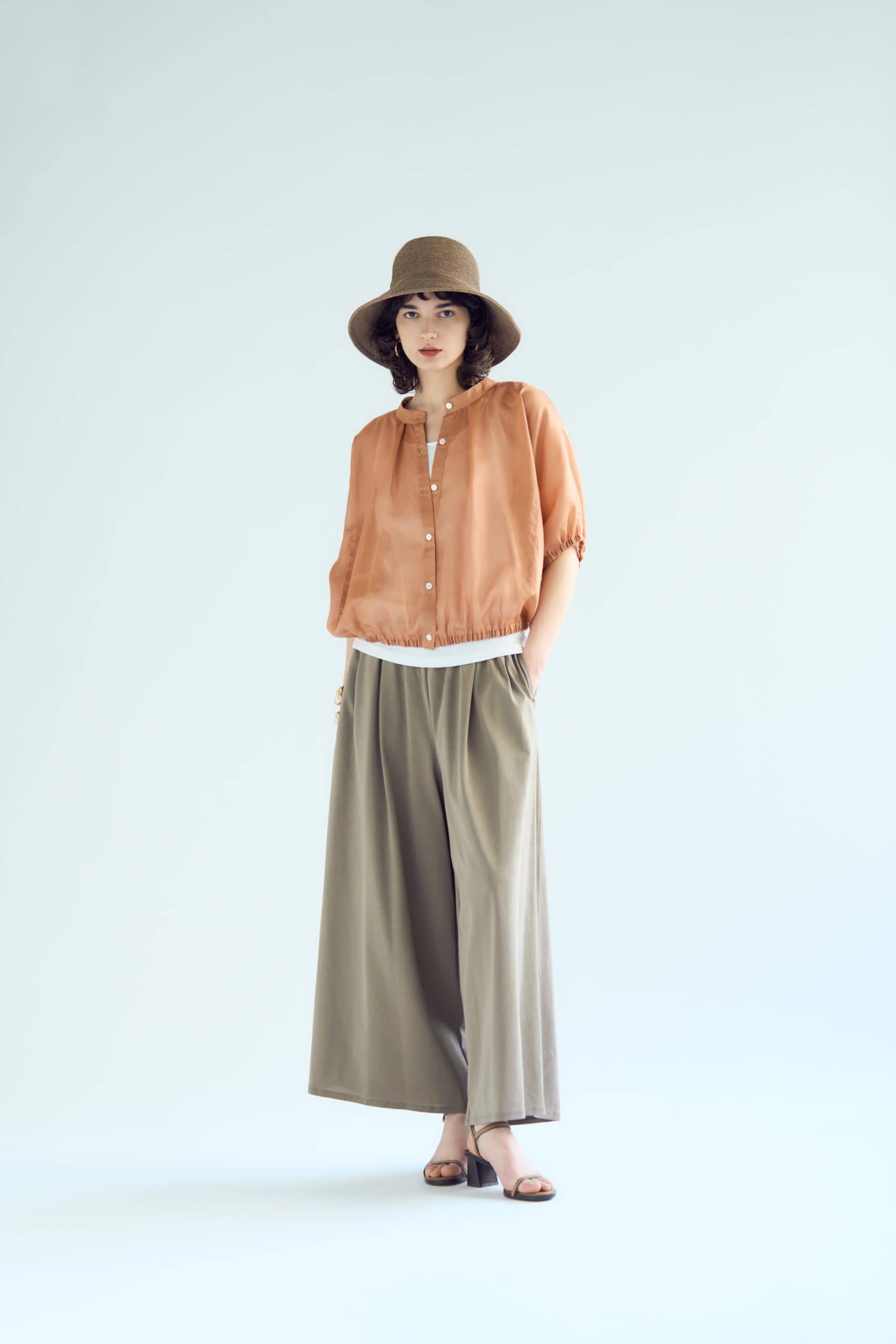 ふわりと広がるシルエットのワイドパンツ。下半身をふんわり包み込み、体型カバーもバッチリ。ドロスト仕様のウエストは楽ちんでまだまだ暑い日も快適に過ごせます。シワになりにくい素材なので、どこにでも安心して着て行けそう。