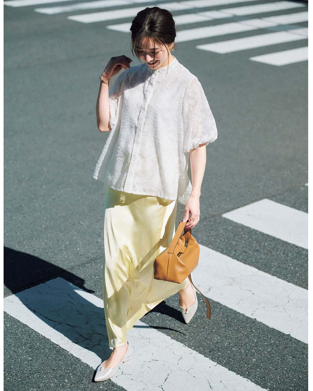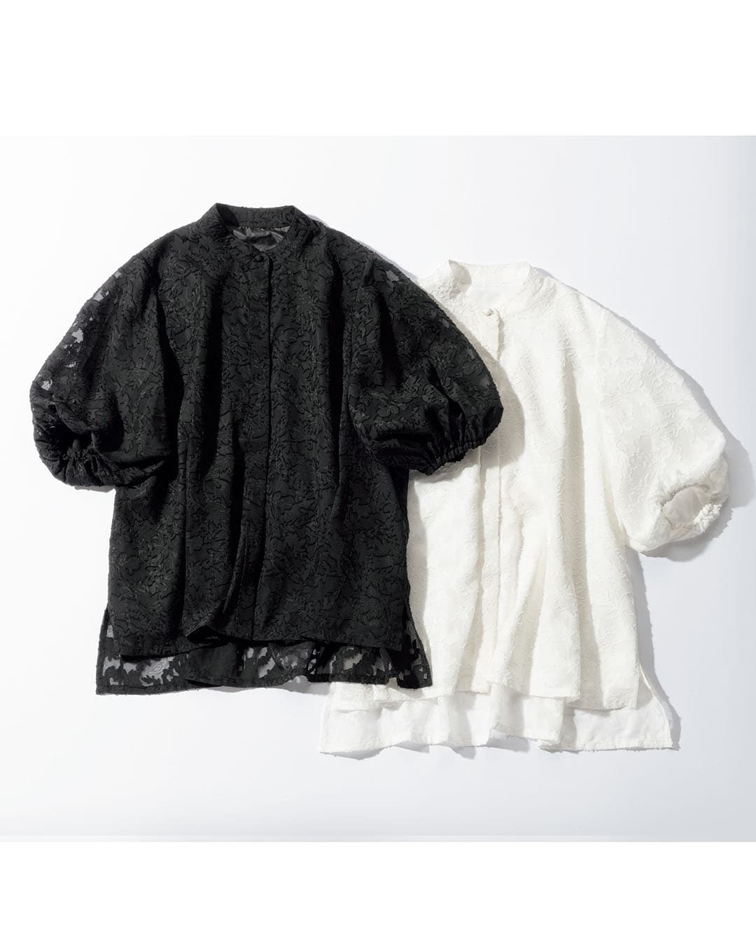シアー素材に抵抗がある人にもぜひ取り入れてほしいのがジャカードのシアー。きちんと感もありデイリーに活躍。