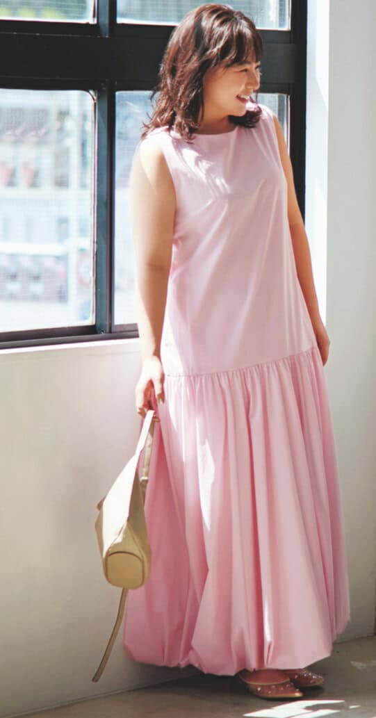 ふんわりラインのバルーンワンピで女性らしく体型カバー