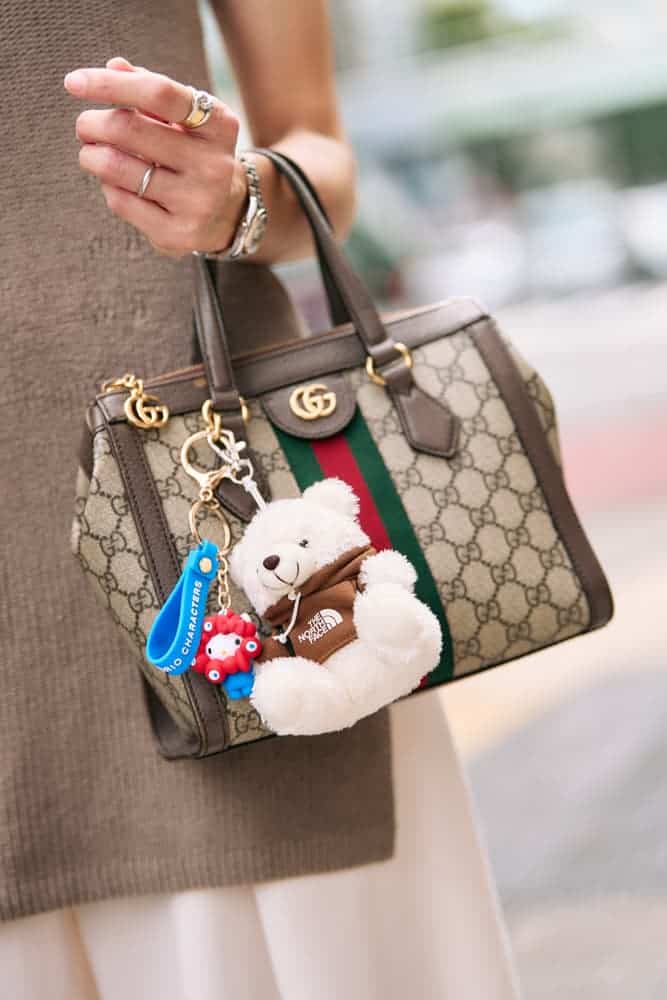 お気に入りのバッグを自分好みにデコレーションできるバッグチャーム。いつものバッグにチャームをプラスするだけでぐっと新鮮見えし、誰とも被らない特別なバッグになるのも魅力的。懐かしの思い出キーホルダーをつけてみたり、推し活グッズ、憧れブランドのチャームを添えるなど楽しみ方は無限大です。今回は、おしゃれ読者たちの思わず真似したくなる「個性あふれるバッグチャーム」をスナップでお届けいたします。