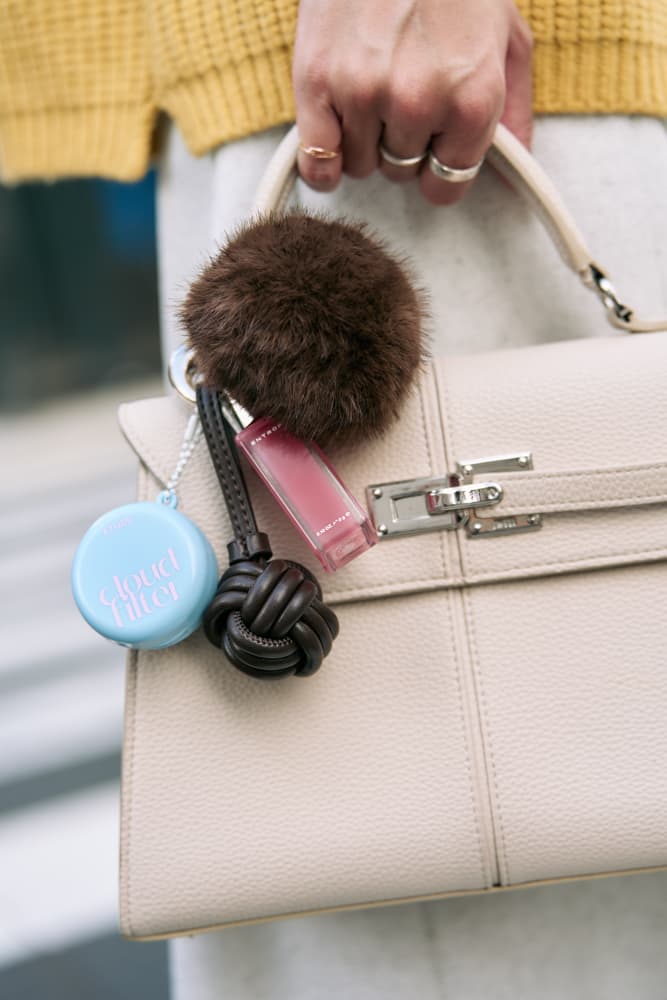 今年注目のブラウンを、さりげなくチャームでプラス。ふわふわのファー素材が秋気分を高めてくれます。コスメのチャームは見た目もおしゃれで可愛いいのですが、ささっとメイク直しもできちゃう実用性も。とても便利で可愛いイチ推しチャームです。
