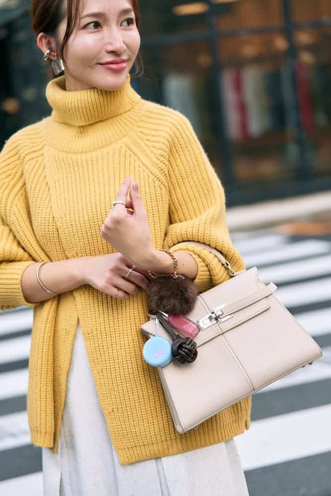 チャームレイヤードで印象変化!こだわりのバッグコーデ
