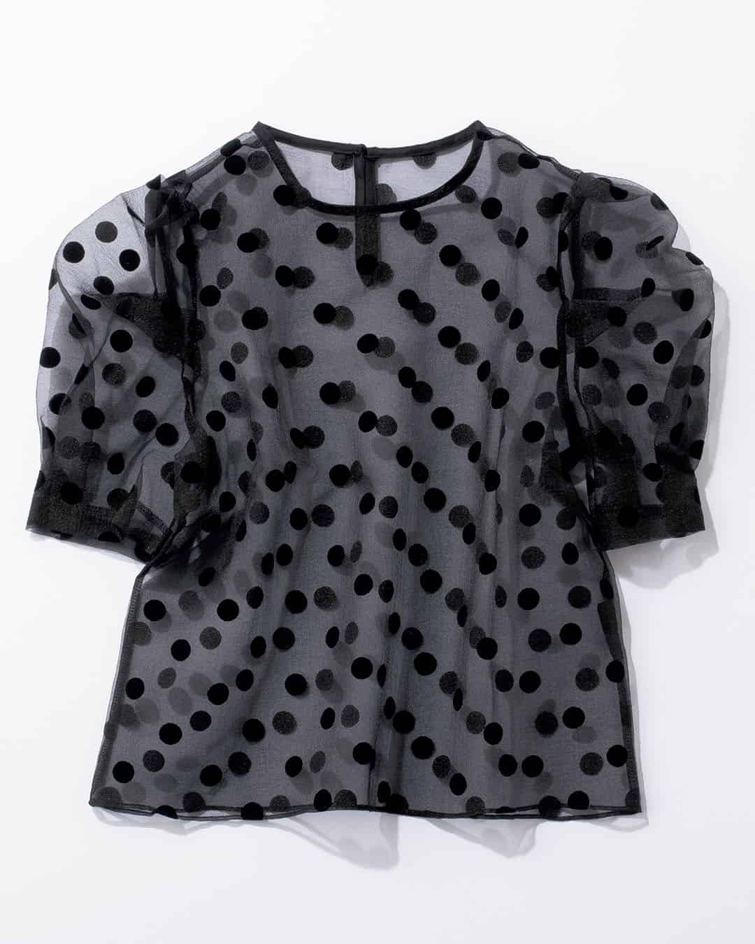 ドット、構築的な袖などただ甘いだけではなく大人っぽさも漂う「シアーブラウス」