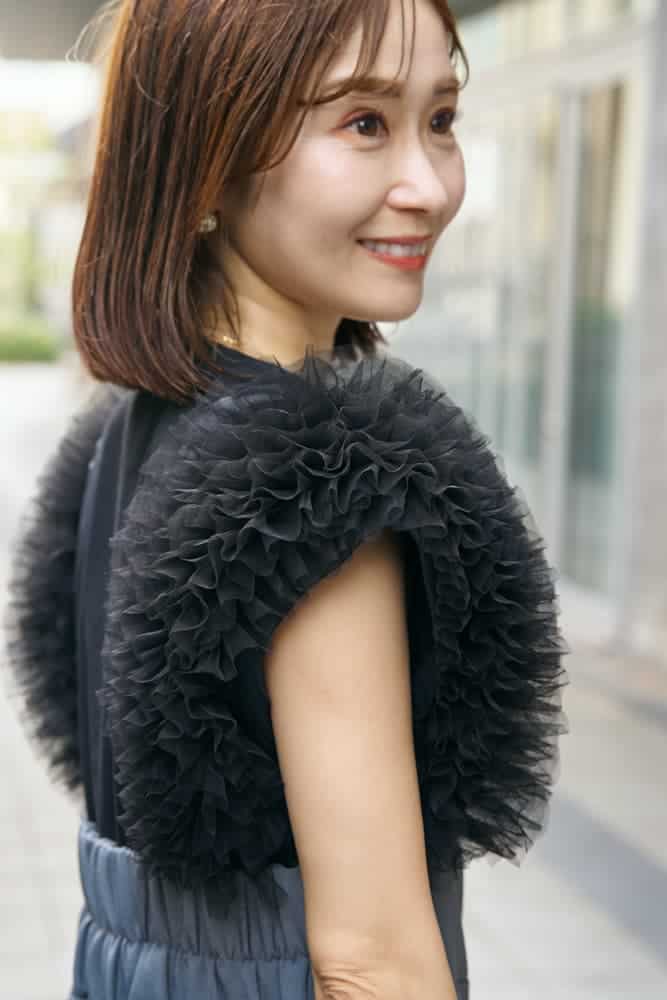 裾フリルトップスで華やかさと涼しげモードをON