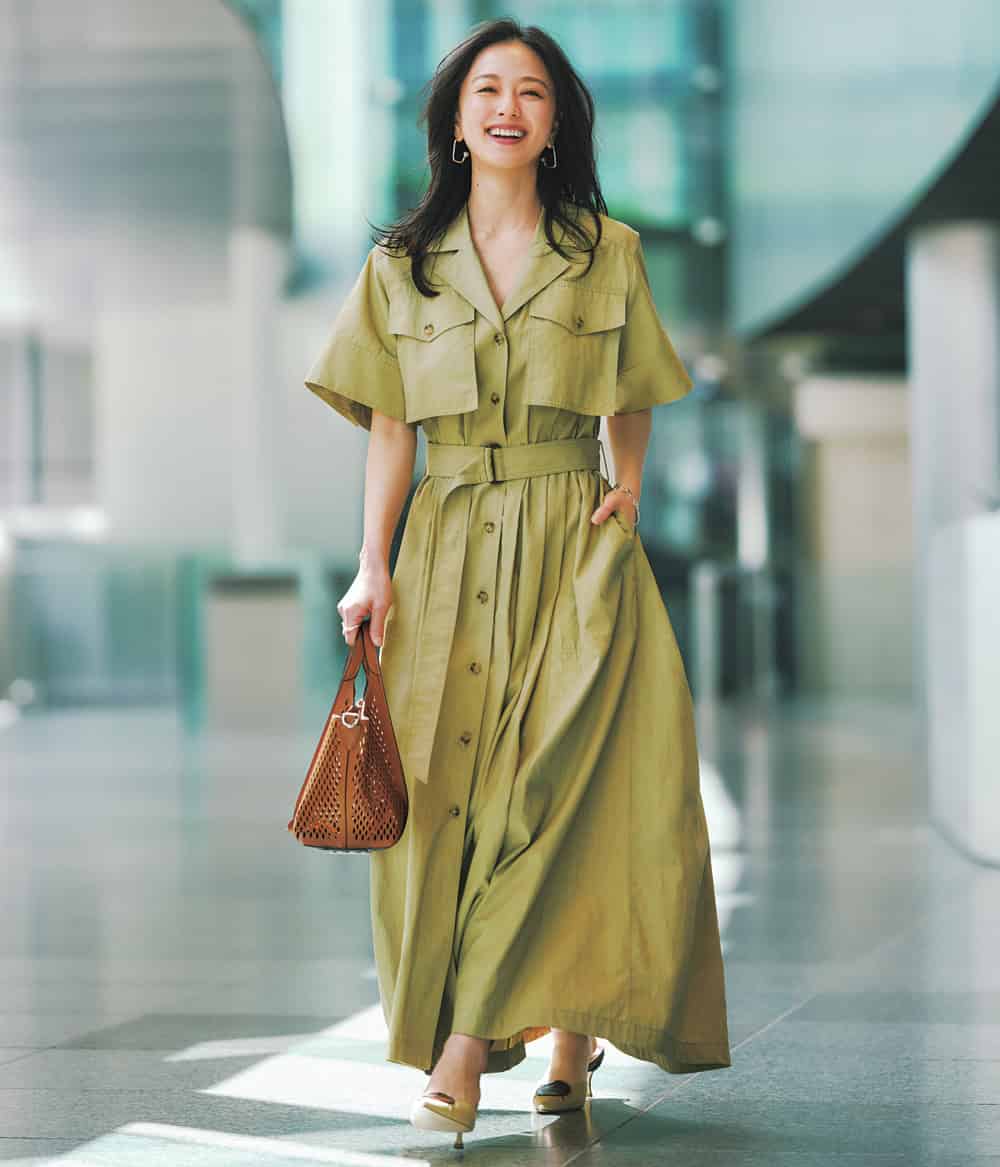 ワンピース¥39,600(サロン アダム エ ロペ)ジャケット¥24,970(FRAY I.D/FRAY I.D ルミネ新宿2店)バッグ¥33,000(ラシット/ラシット 西銀座店)サンダル¥59,400(ブレンテッラ/ハウス オブ ロータス)ブレスレット¥33,000チョーカー¥86,900〈ともにニナ・エ・ジュール〉チェーンネックレス¥33,000〈マッソーズアンドマッソーズ〉(すべてショールーム ロイト)