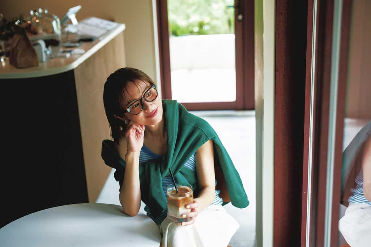 メガネ¥54,780(オリバーピープルズ/ルックスオティカジャパン カスタマーサービス)肩に巻いたスウェット¥25,300(ビズ スケートボーズ/サードマガジン)タンクトップ¥4,290(ヘルスニット/ヘルスニット・ブランズ)スカート¥26,400(マルティニーク/マルティニーク ルミネ横浜)バッグ¥5,500(ラ・ユット/グーニーPR)シューズ¥30,800(カミナンド/グラビテート)ピアス¥33,000※片耳価格(マユ/マユ ショールーム)
