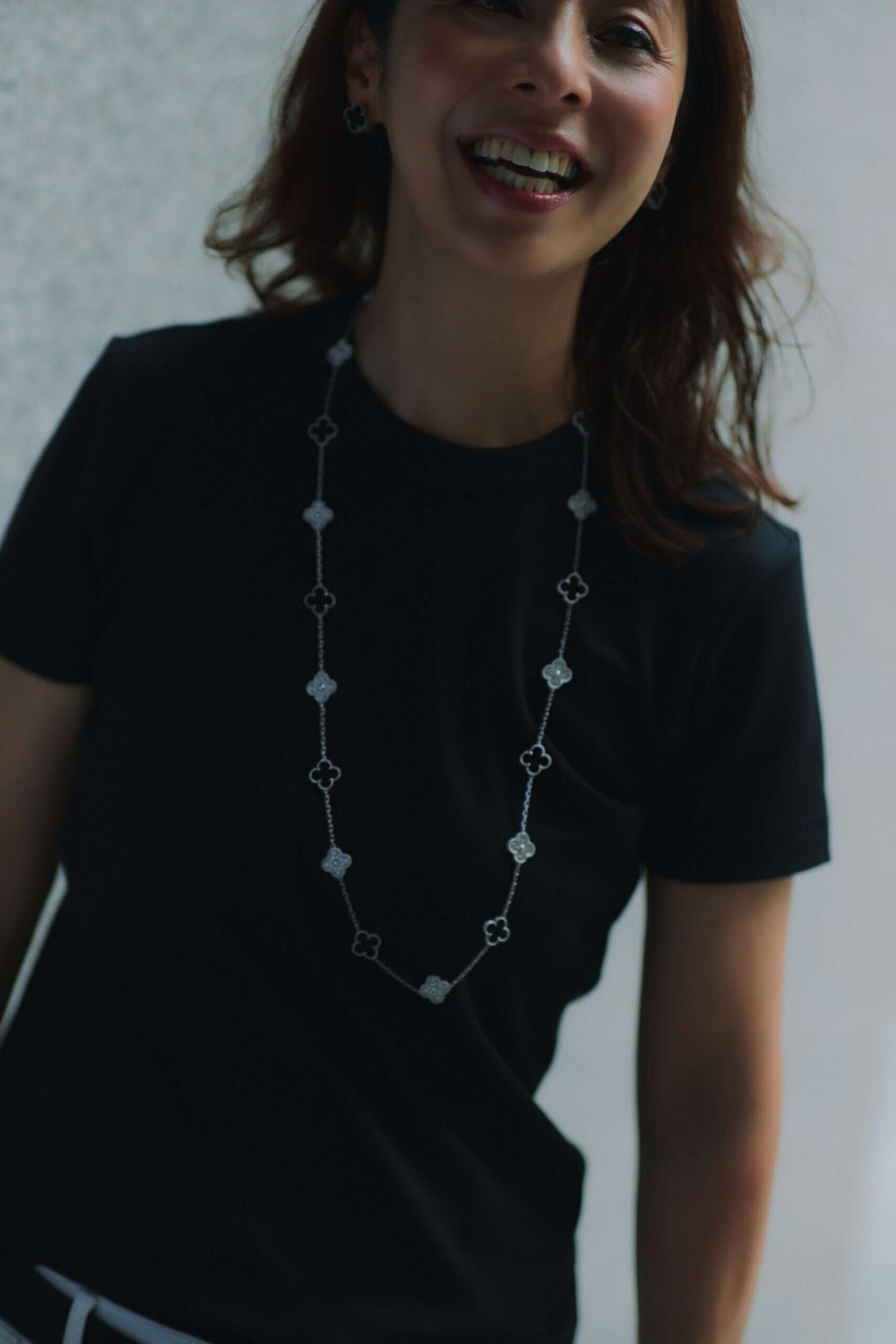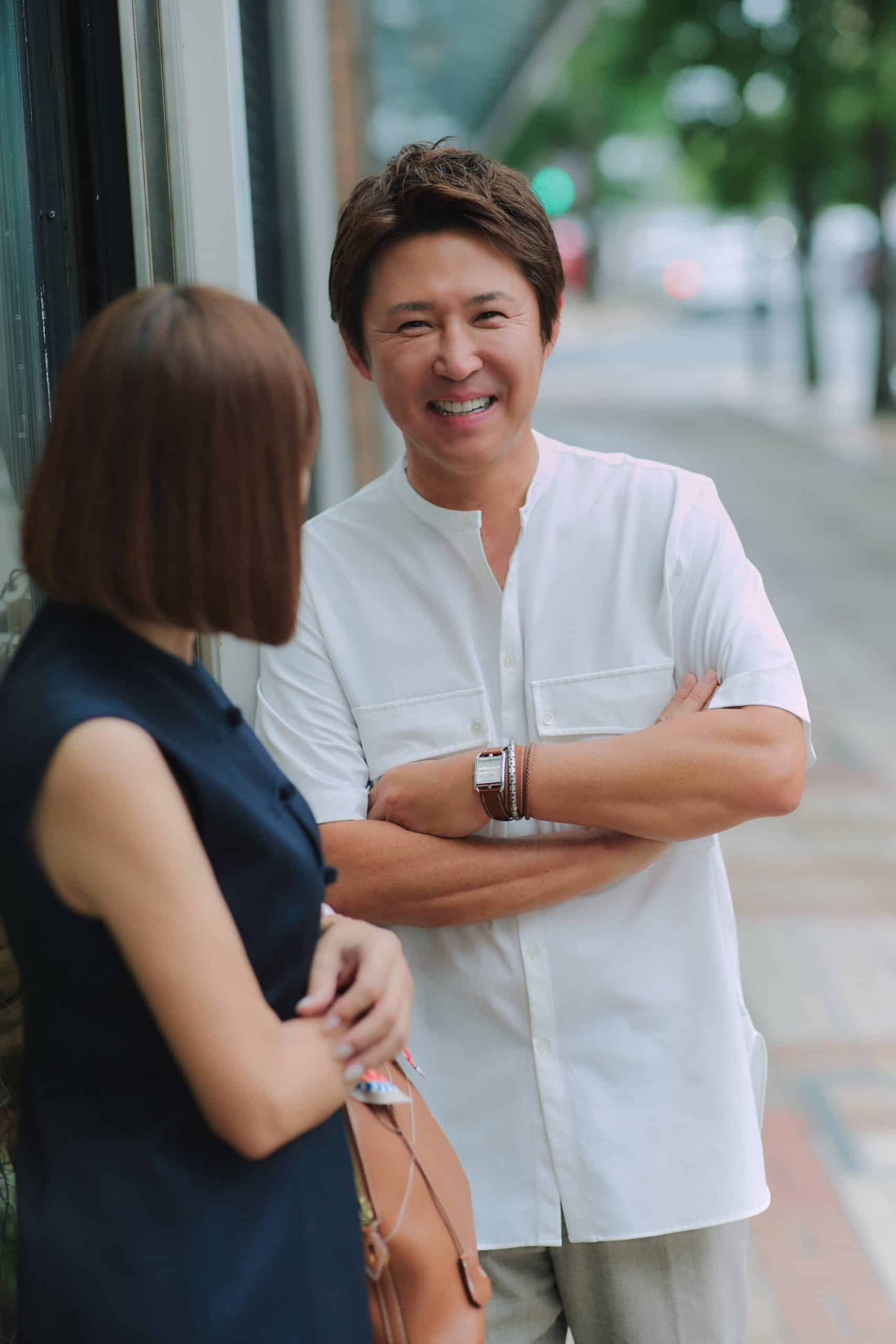 ハイクラスのホテルに世界レベルのSPAを提供・運営する多恵さんにとって、ファッションは人とのコミュニケーションをとるうえで重要なツールの一つ。特にクライアントに失礼が無いように、気を配るそうですが、それをチェックしてくれるのが拓也さんだとか。「ええんちゃうん」と声がかかると自信をもってMTGにでかけられるそう。お互いが健康に関して意識が強いという二人のファションルールは、シンプルであることと、華美にならず、カジュアルになりすぎないように上質な品のよい小物とジュエリーを加えるのがポイント。