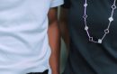お互いを周囲の空気とともに包み込むような、大人のペアルック。