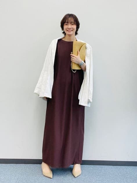 肩周りをカバーする絶妙なフレンチスリーブと体のラインを拾わないIラインシルエットで華奢見えを叶えてくれるワンピース。ジャケットを羽織ればきちんとシーンもOK。コーデに迷ったらこれ!と思える安心感が忙しい朝の余裕につながります。