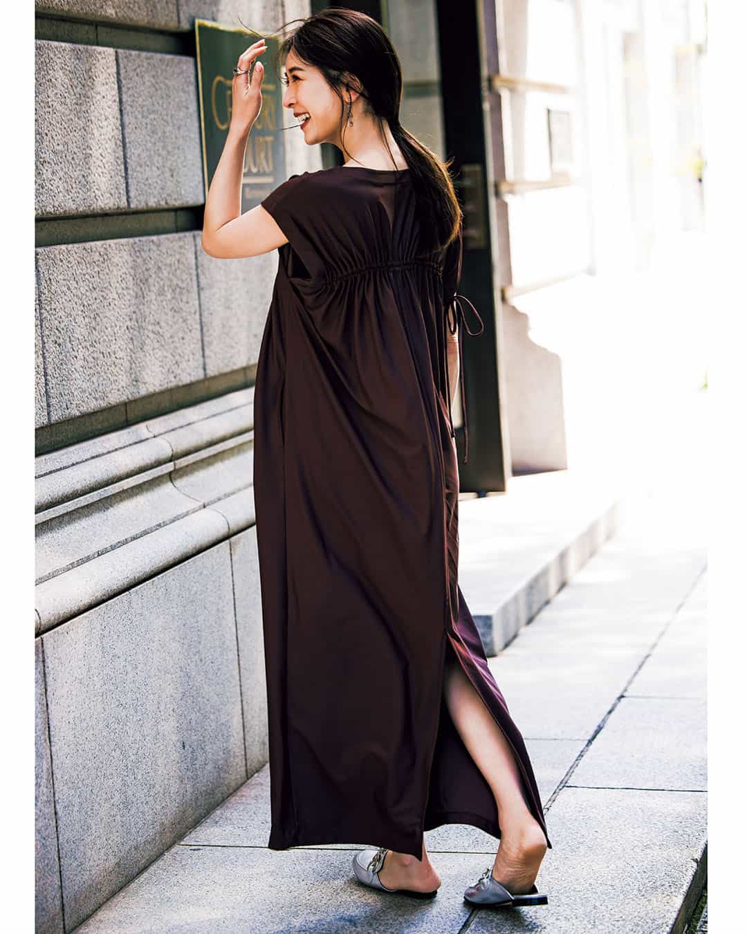 着回しアイテム:二の腕&腰回りをカバーして、スリットで細見えを叶える「名品ワンピ」