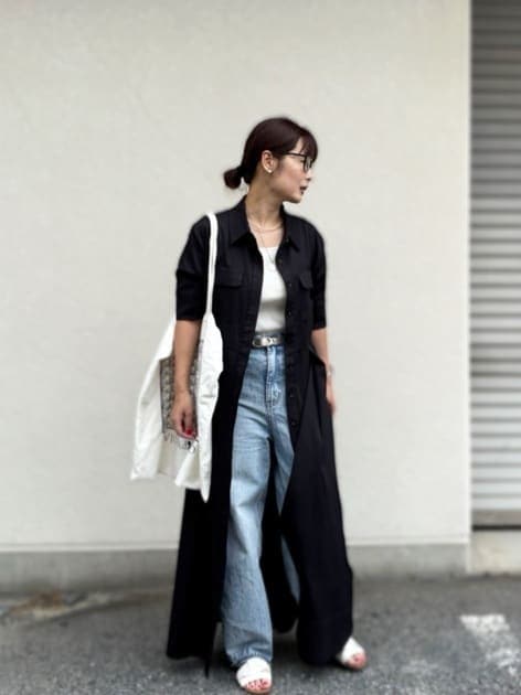 「羽織り風にして、Tシャツ&デニムにプラス!シャツワンピのこなれ感が、ブルーデニムを大人っぽく仕上げます。シャツワンピはその日の予定や気分で印象チェンジできるのが魅力です。」