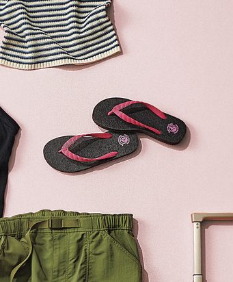 低めのソールでサッと履きやすいビーチサンダル。日本人に合わせた細やかな作りは、足への負担が少なく、履き心地抜群。鼻緒の部分のワンポイントカラーによって印象がガラッと変わります。
