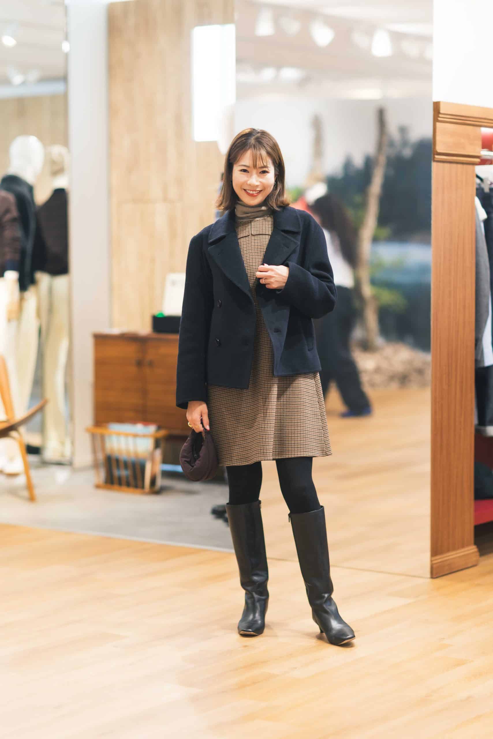 ダブルフェイスショートコートリラックスフィット¥7,990 メリノリブタートルネックセーター¥2,990 ダブルフェイスミニワンピース¥4,990 ヒートテックニットリブタイツ¥1,500 ラウンドウルトラミニバッグ¥1,290 (すべてユニクロ) ※すべてMサイズを着用 靴(私物)