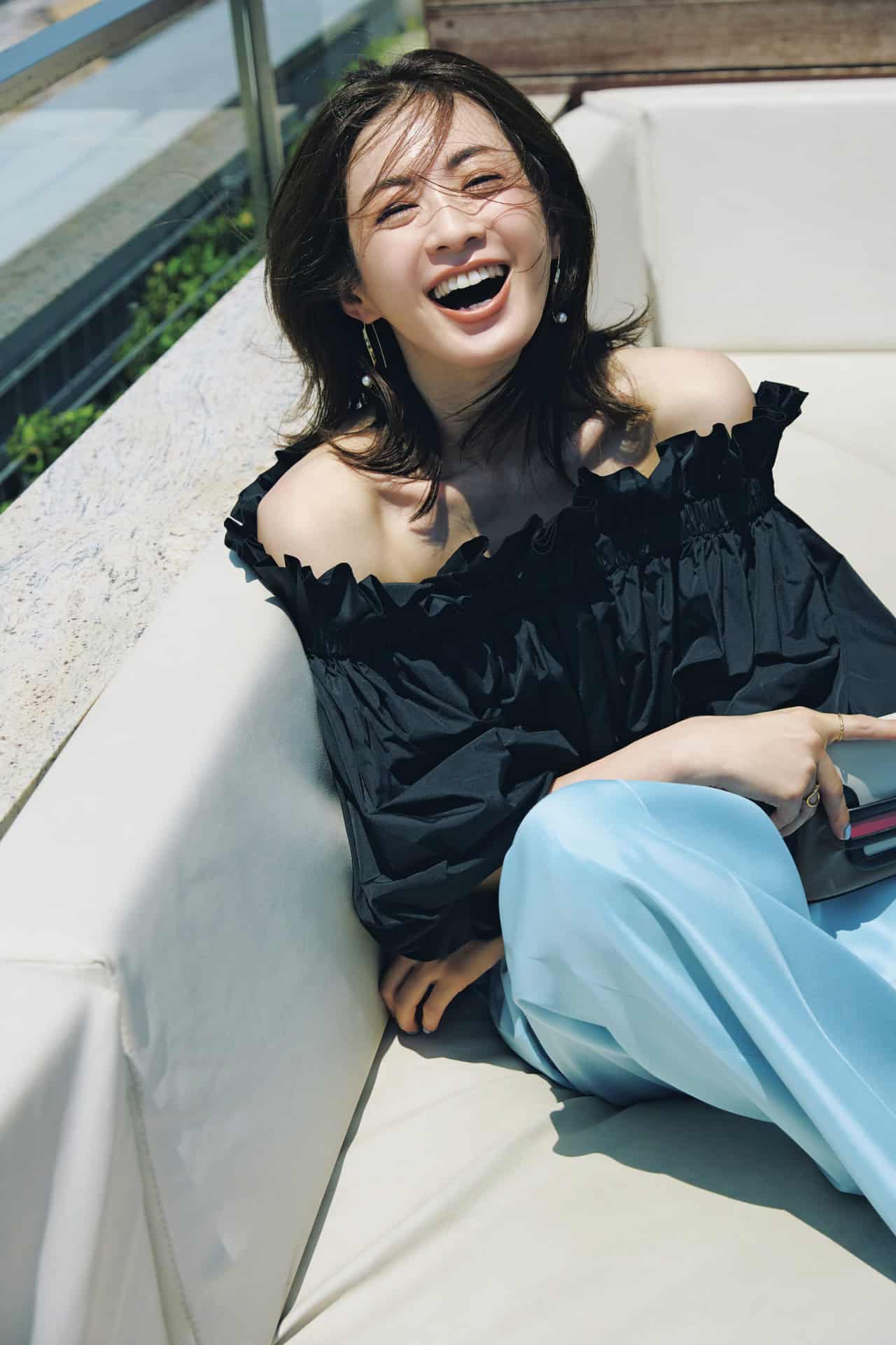 今、着たい服No.1といえば〝オフショル〟。ママOFF時間は大胆にデコルテ見せオフショルが華やかコーデのポイントに。ヘルシーな肌感を味方に、気負わずラフに女子会へ参戦!