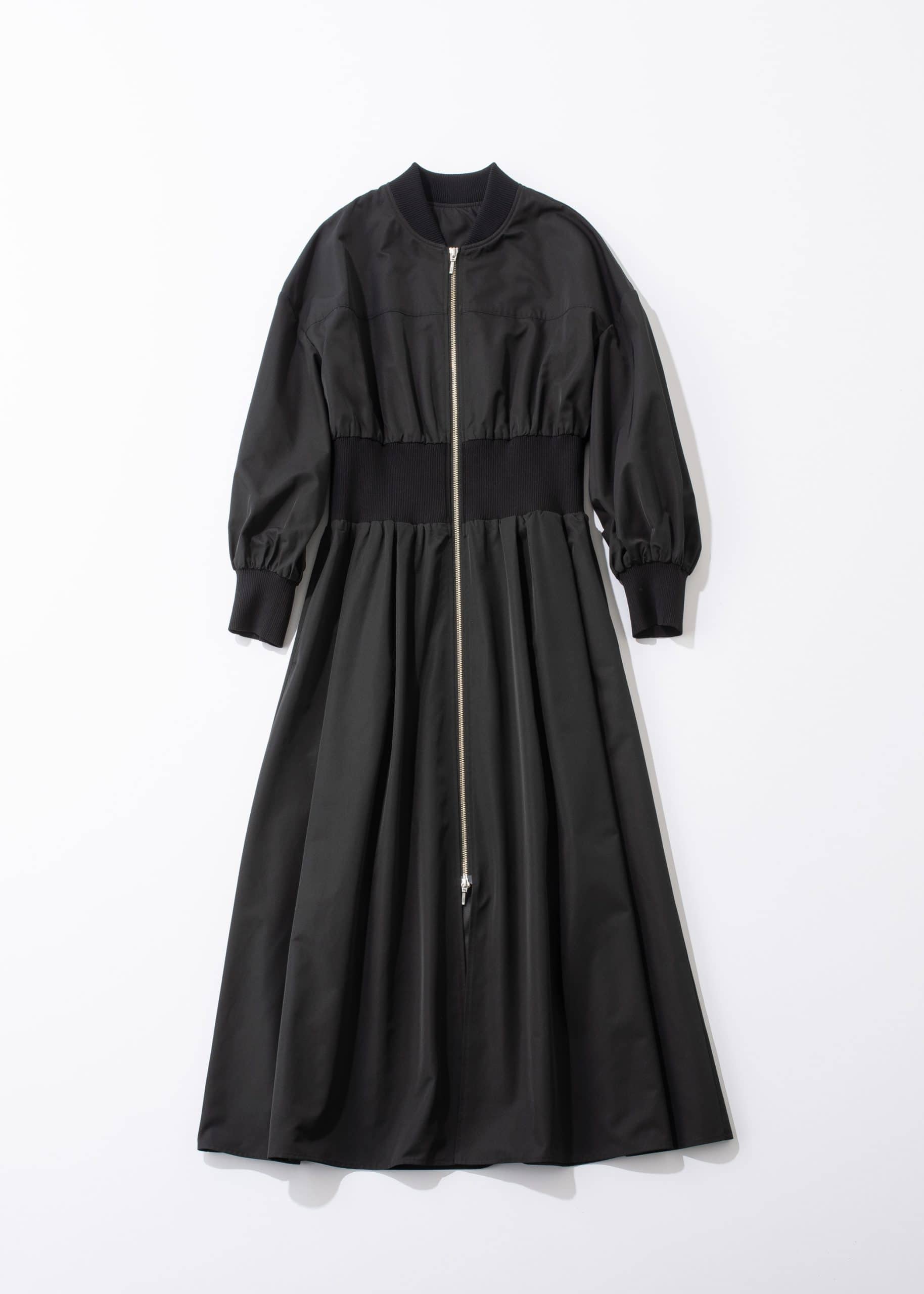 一着で二つの表情を楽しめる、逆開きロングジッパーがポイントのワンピース。ジップを閉じれば知的なワンピースに、開ければ軽やかな羽織として印象をチェンジ。気温やシーンに合わせて軽めのコートとしても活躍する2WAY仕様で、季節の端境期に頼れる一枚です。