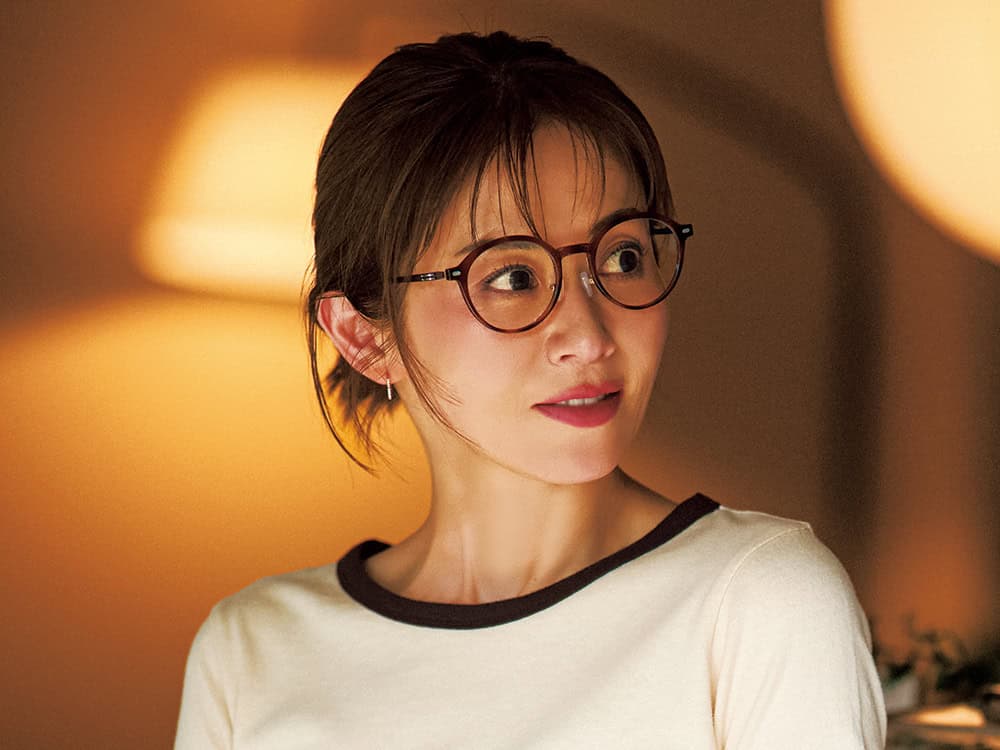 パイピングやポロシャツのような旬のスポーティトップスをキリッと引き締める【伊達メガネ】。目元をいい具合にカモフラできるから、大人の救世主に!