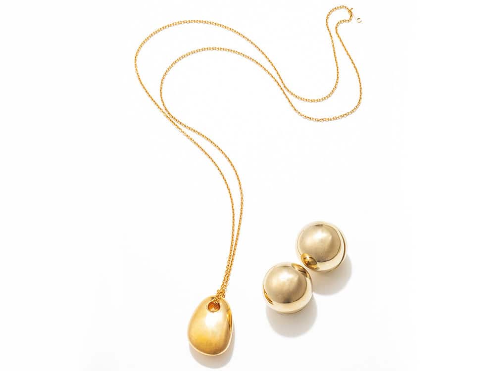 リラックスパンツコーデは、羽織りと大ぶりアクセでアップデートを。