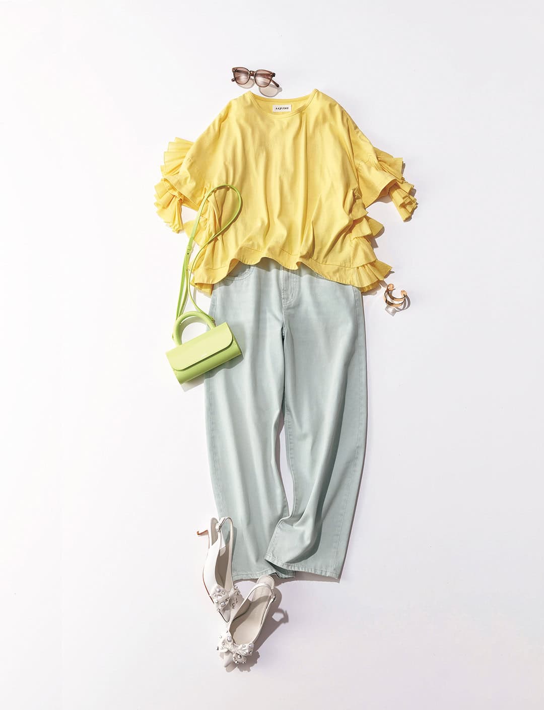 3.シンプルなワンツーコーデこそ、ワイドに更新を