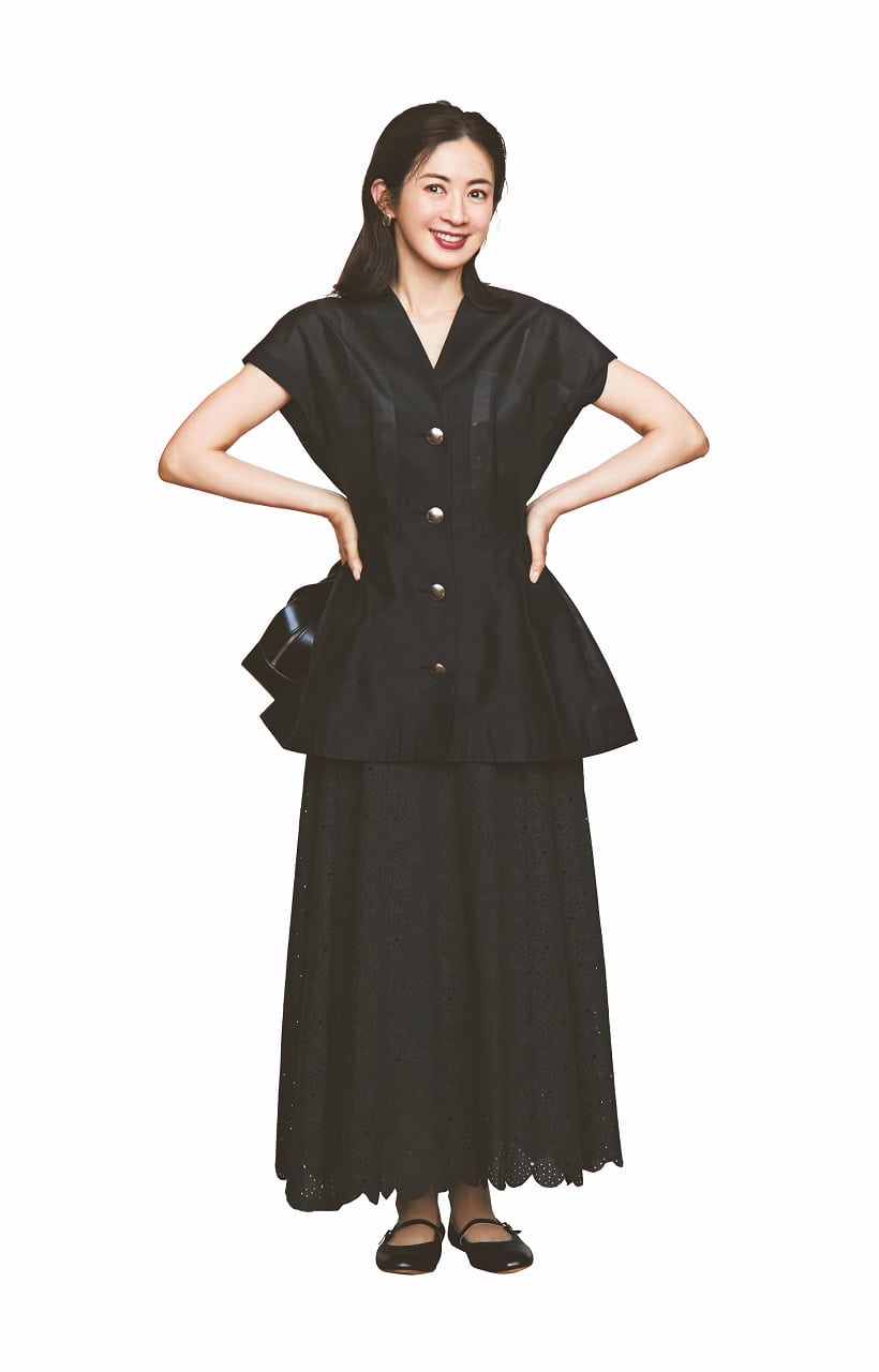 カットソー¥8,800(セブンドット)ジャケット¥23,100(マイストラーダ)スカート¥24,200(アルページュストーリー)バッグ¥72,900(カフネ/カフネ カスタマーサポートセンター)イヤリング¥9,900(イットアトリエ/フォーティーン ショールーム)ネックレス¥143,000(ウノアエレ/ウノアエレ ジャパン)