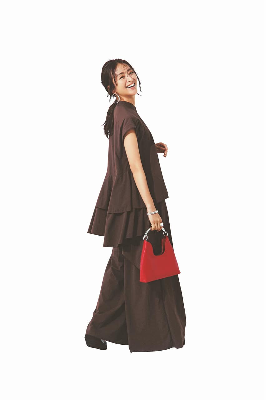 トップスとパンツそれぞれにデザインが効いているから、各々単独でも活躍してくれること間違いなし。効率的に着回せて、軽やかなシルエットで動きやすく、そしてトレンド感も兼ね備えた、まさに秀逸セットアップ。小物で差し色を入れて、華やかさをプラスして。