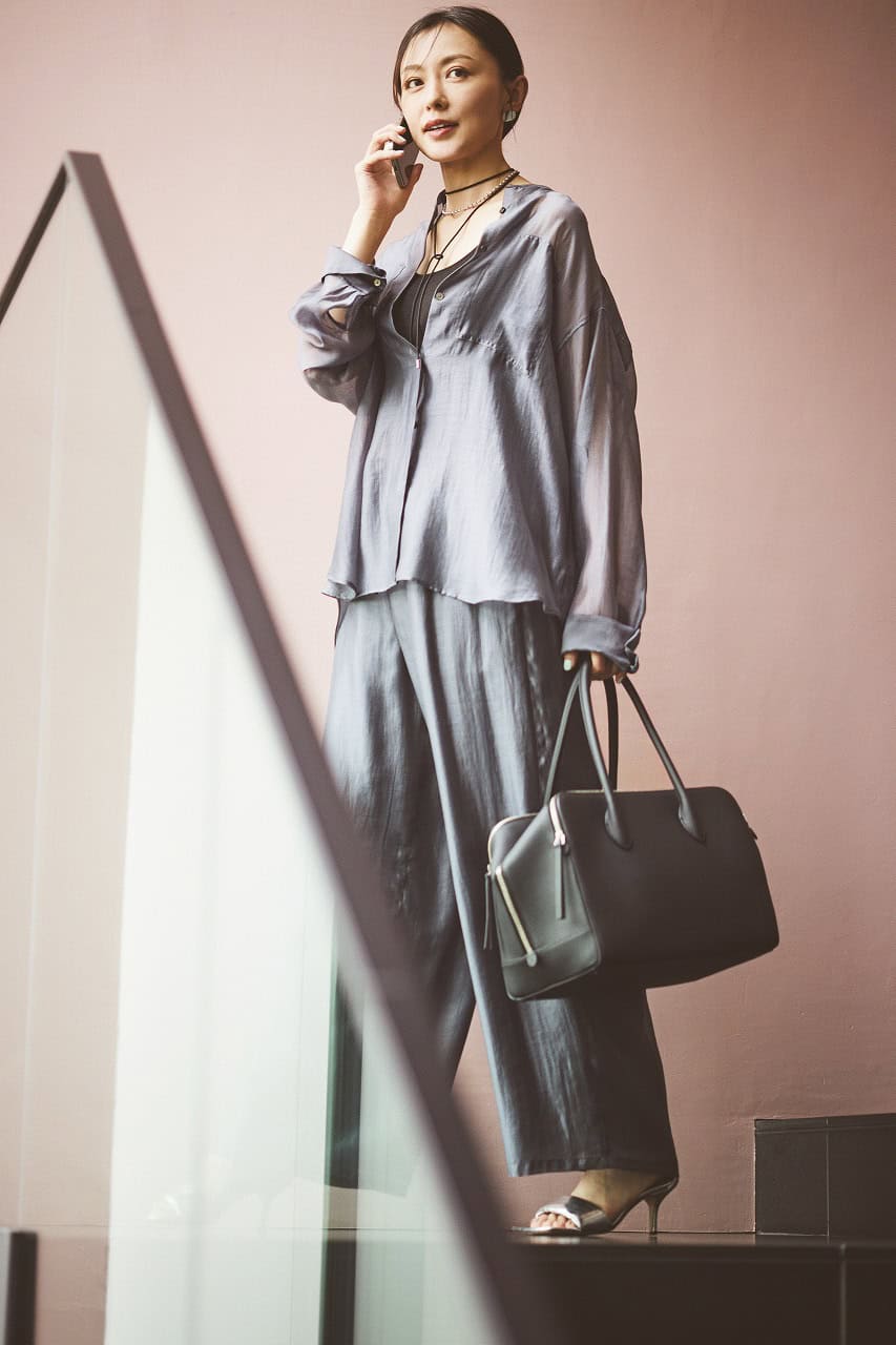 ブラウス×ワイドパンツセットアップで、効率×トレンド!